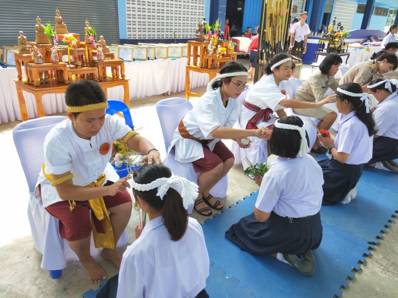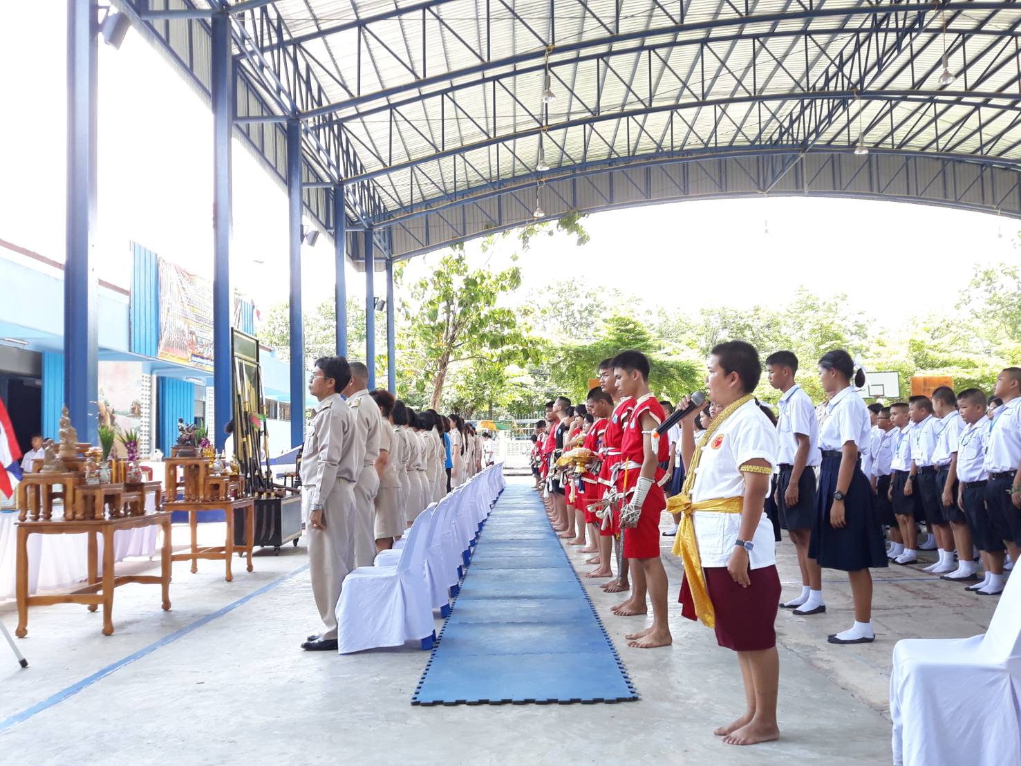 พิธีมอบตัวเป็นศิษย์ การเรียนการสอนศิลปะมวยไทย ,กระบี่กระบอง, นักเรียนชมรมศิลปะการต่อสู้ป้องกันตัวแบบ ปีการศึกษา 2561