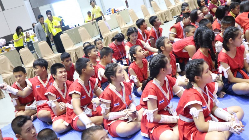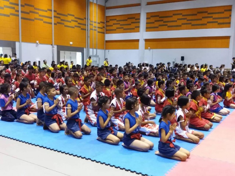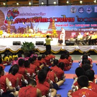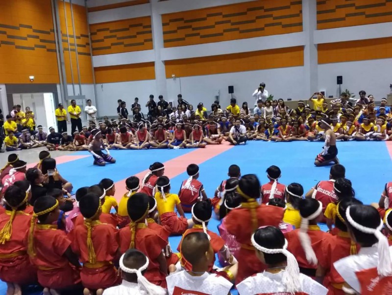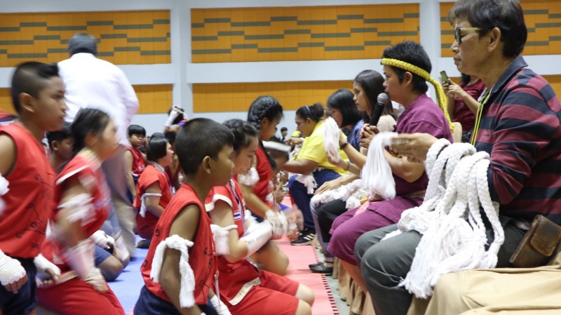 นักเรียนโรงเรียนปราจีนกัลยาณี เข้าร่วมพิธีไหว้ครูมวยไทย และครอบครูมวยไทย การประกวดกรุงศรีคีตะมวยไทย