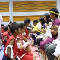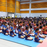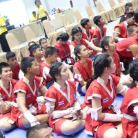 นักเรียนโรงเรียนปราจีนกัลยาณ๊ เข้าร่วมพิธีไหว้ครูและครอบครูมวยไทย การประกวดกรุงศรีคีตะมวยไทย วันที่ 20 กรกฎาคม 2562 |