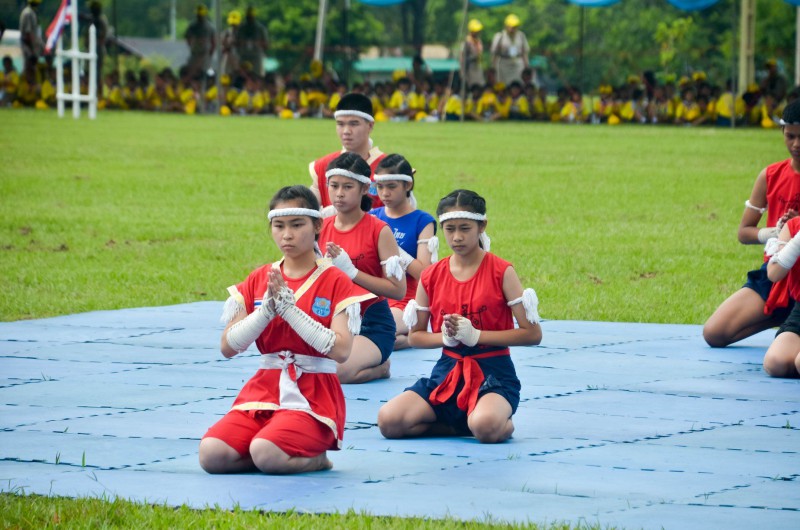 นักเรียนชมรมมวยไทย แสดงศิลปะมวยไทย คีตะมวยไทย ทักษะมวยไทย และไหว้ครูมวยไทย งานชุมนุมลูกเสือสำรองแห่งชาติ ครบรอบ 61 ปี ลูกเสือสำรองแห่งประเทศไทย ระหว่างวันที่ 5 - 6 สิงหาคม 2562 ณ กองพันทหารราบที่ 3 กรมทหารราบที่ 2 รักษาพระองค์ |