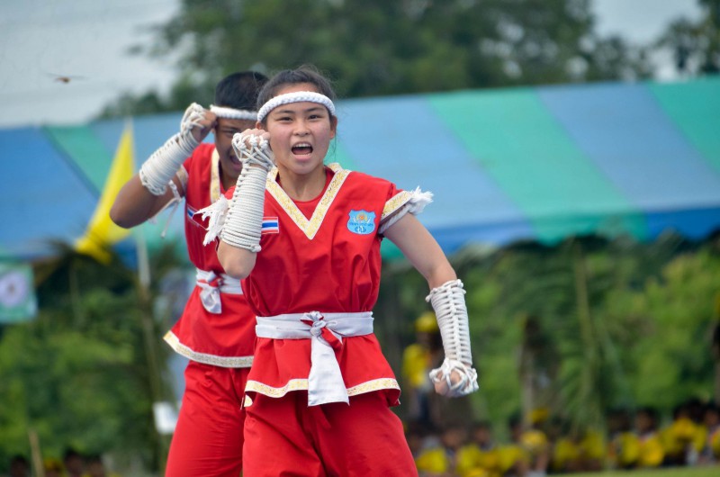 นักเรียนชมรมมวยไทย แสดงศิลปะมวยไทย คีตะมวยไทย ทักษะมวยไทย และไหว้ครูมวยไทย งานชุมนุมลูกเสือสำรองแห่งชาติ ครบรอบ 61 ปี ลูกเสือสำรองแห่งประเทศไทย ระหว่างวันที่ 5 - 6 สิงหาคม 2562 ณ กองพันทหารราบที่ 3 กรมทหารราบที่ 2 รักษาพระองค์ |