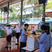นายวิเชียร อินทมาศ ผู้อำนวยการโรงเรียน พร้อมด้วยคณะผู้บริหาร คณะครู และนักเรียน ร่วมกันใช้สิทธิลงเสียงในการเลือกตั้งคณะกรรมการสภานักเรียนประจำปีการศึกษา 2564 โดยพรรคที่ได้รับเลือกได้แก่ พรรคกัลยาณมิตร |