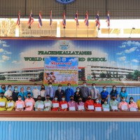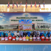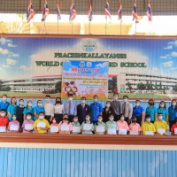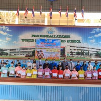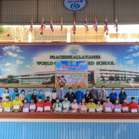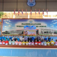 นายวิเชียร อินทมาศ ผู้อำนวยการโรงเรียนปราจีนกัลยาณี พร้อมด้วยคณะผู้บริหาร และหัวหน้ากลุ่มสาระการเรียนรู้ภาษาต่างประเทศ มอบทุนการศึกษาและเกียรติบัตรให้กับนักเรียนที่ผ่านการคัดเลือก
