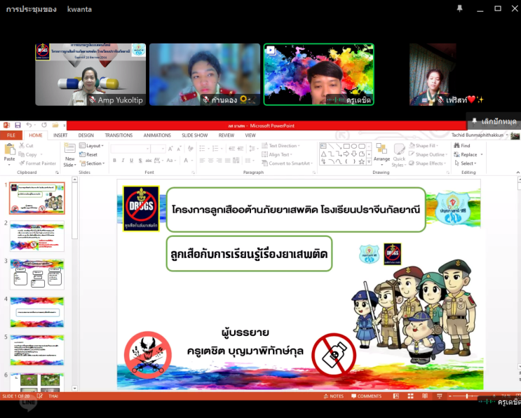 การอบรมรูปแบบออนไลน์ โครงการลูกเสือต้านภัยยาเสพติด ปีการศึกษา 2564