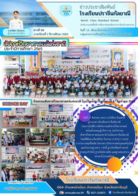 งานสัปดาห์วันวิทยาศาสตร์แห่งชาติ จัดวันที่ 17 สิงหาคม 2565 ณ โดม1 โรงเรียนปราจีนกัลยาณี