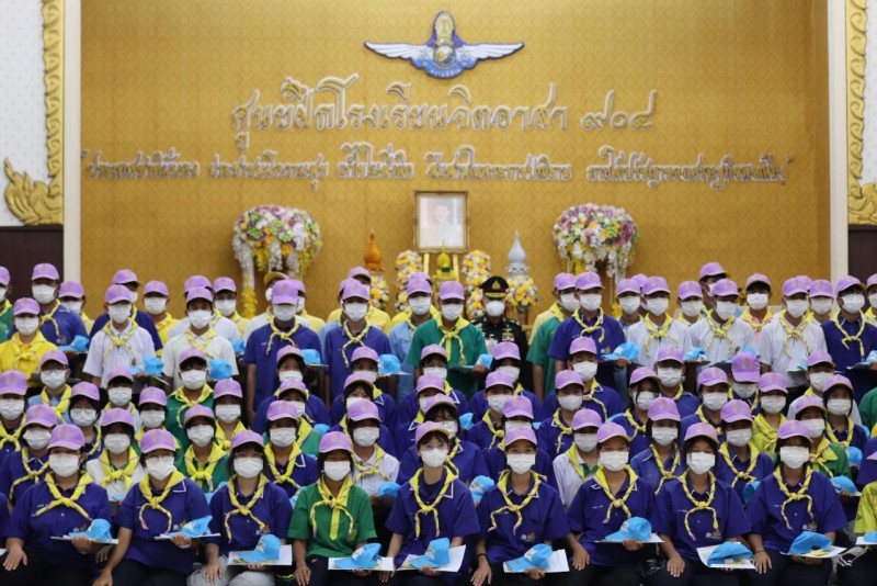 ับหมวกพร้อมผ้าผูกคอพระราชทาน เพื่อถวายงานด้านจิตอาสา