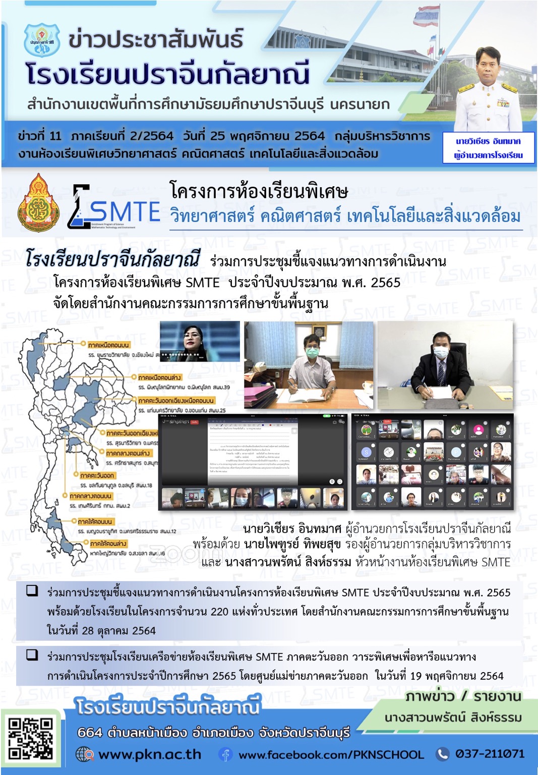 ภาพข่าวประชาสัมพันธ์ที่ 11 ภาคเรียนที่ 2/2564 - งานห้องเรียนพิเศษ SMTE ร่วมการประชุมชี้แจงแนวทางการดำเนินงานโครงการห้องเรียนพิเศษ SMTE ประจำปีงบประมาณ 2565 (สพฐ)