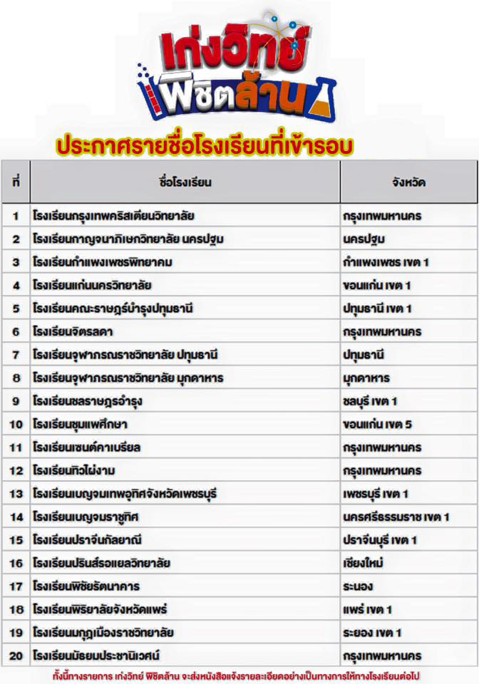 เข้ารอบการแข่งขันรายการเก่งวิทย์พิชิตล้าน