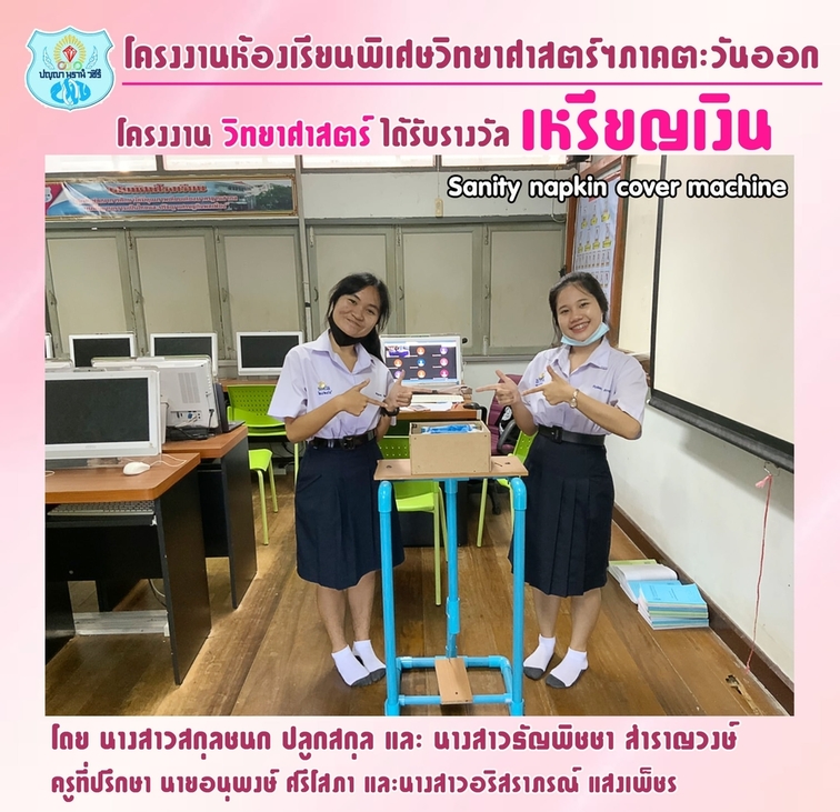 โครงงานเรื่อง Sanity napkin cover machine ระดับภาคตะวันนออก ผู้จัดทำ นางสาว สกุลชนก ปลูกสกุล นางสาว ธัญพิชชา สำราญวงษ์ ครูที่ปรึกษา นายอนุพงษ์ ศรีโสภา นางสาวอริสราภรณ์ แสงเพ็ชร |